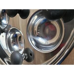 Professional-grade Norpro 10.25-inch stainless steel egg poacher in very good used condition. This is the larger 6-cup model, featuring a heavy-duty build and a high-polish finish.
