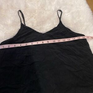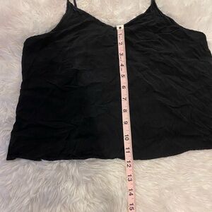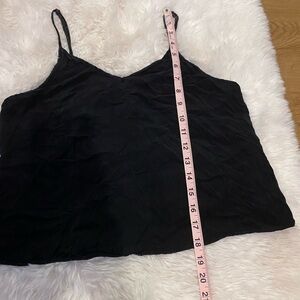 Discover the elegance of this sleek black camisole, perfect for layering or wearing alone. Its versatile design makes it a wardrobe essential. proper for a variety of occasions. For example, the flexibility in lengthening the strap above the shoulders on the back allows appropriate placement for appropriate environments. If you need to go formal and more conservative, it works perfectly and vice versa. It’s extremely comfortable brand new.