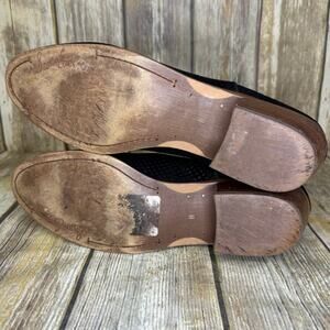 Sam Edelman Black Suede Distressed Block Heel Boho Ankle Bootie Womens Sz 11