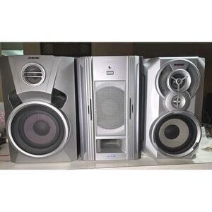 The Sony Assorted Speakers with Subwoofer is a mini Hi-Fi component system in a sleek silver color. It features raw cable speaker jacks for easy connectivity. This compact and shelf stereo system delivers powerful audio output, perfect for enhancing your home audio experience. With the reputable Sony brand name, you can expect high-quality sound performance and durability from this speaker set.