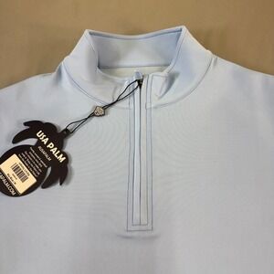 Brand new with tags. Discover effortless style and comfort with this USA Palm quarter-zip pullover. The smooth, light blue fabric feels fantastic against your skin, offering a perfect blend of stretch and breathability for all-day wear. Its classic quarter-zip design allows for easy temperature regulation, while the clean lines and relaxed fit make it a versatile addition to any wardrobe. Ideal for a casual day out, a round of golf, or traveling in comfort.
