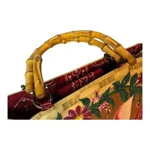 Vintage Isabella Fiore Handbags Bag Country Tan Beaded Pig Red Bandana Purse