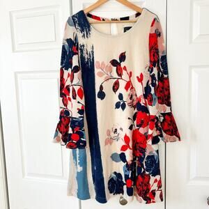 Beautiful Maeve by Anthropologie knit floral swing dress in excellent used condition. Features a bold multicolor floral print, soft knit fabric, and stylish bell sleeves. A flattering, easy silhouette that works year-round.
