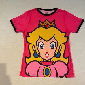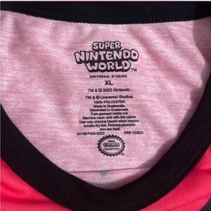 Vibrant pink tee featuring Princess Peach of Super Mario Nintendo World graphic - Universal Studios. Perfect for fun adventures!