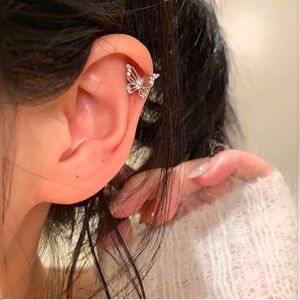 Shiny Hollow Silver Color Rhinestone Butterfly 316L Stainless Steel Ear Bone Nail Delicate Waterproof Small Earrings for Women