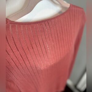 Delicate and feminine coral knit top by Evereve. Lightweight, gorgeous color, flattering fit. Features a scoop neck and ribbed texture. NWT, Size S