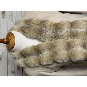 Cream w/ faux fur trim along front and cuffs; hidden single hook and loop front closure; long sleeves; two front side pockets; fully lined