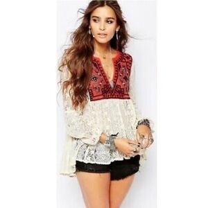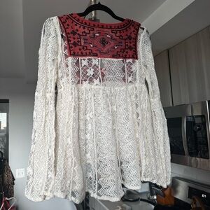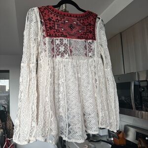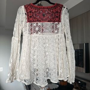 Free People Casablanca Lace Trim Tunic Ivory Combo