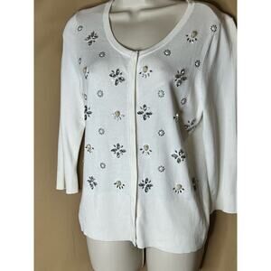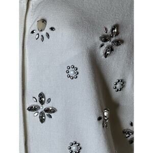 White House Black Market WHBM White Cream Embellished Crystal Cardigan M NWOT