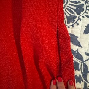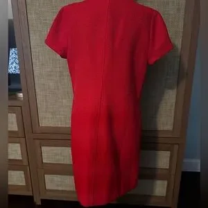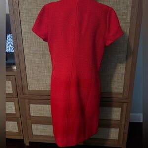 Chic red midi dress by J. Crew. Features floral jeweled button accents. Fully lined. Pockets. Perfect for stylish outings. New with original tags. Smoke free home. Perfect condition. Size 10.