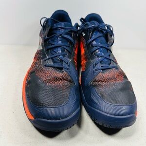 Experience superior performance with men's tennis shoes. Featuring a striking blue and orange design, these shoes offer both style and comfort on the court.