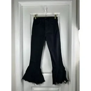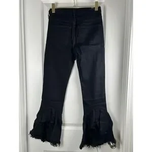 The Citizens of Humanity Drew Flounce High Rise Crop Flare Jeans in Soiree Black 25 are a stylish and trendy addition to any woman's wardrobe. These high-rise jeans feature a flared leg style with a raw hem accent, adding a touch of edginess to the classic black color. The crop length and ankle length make them perfect for a variety of outfits, while the zip closure ensures a secure fit. With the Citizens of Humanity brand known for their quality and style, these jeans are a must-have for any fashion-forward individual.