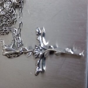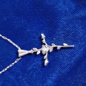 Rose Sterling Silver Cross Pendant Necklace