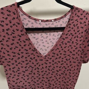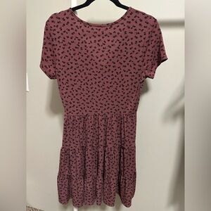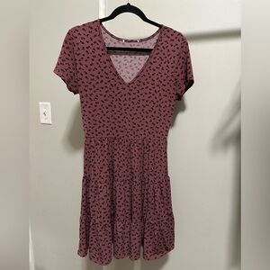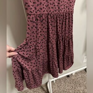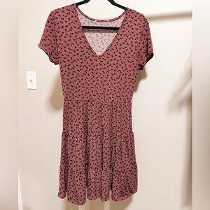 Women’s Mauve and Black Floral V Neck Short Sleeve Faux Tiered Mini Dress small