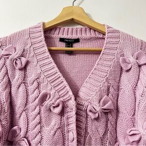 Women’s Cable Knit Bow Crop Cardigan Sweater M Cottagecore Coquette Preppy Twee