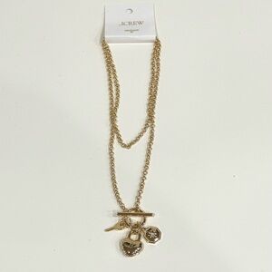 Stylish J. Crew necklace with a double gold chain. Features heart and hexagon charms. Ideal for a chic look.