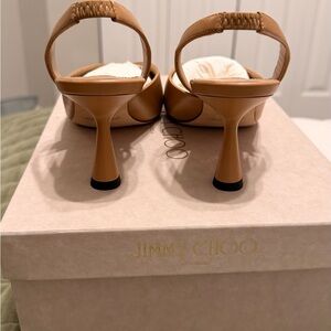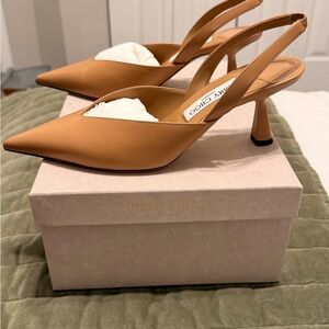 Chic tan leather heels with a pointed toe and slingback design. New in box with dust bag, only tried on once.
