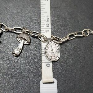 Silver tone Alice in wonderland themed bracelet up to 10"
