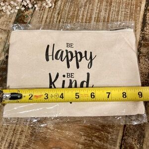 Be Happy Be Kind Canvas Makeup Pouch Zippered 9” x 6”