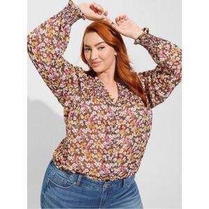 Torrid Crinkle Chiffon Smocked Blouson Sleeve Blouse 5X NWT