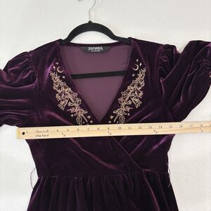 Disturbia Hera Velvet Dress 2 Mini Wrap Purple Celestial Embroidered Whimsigoth