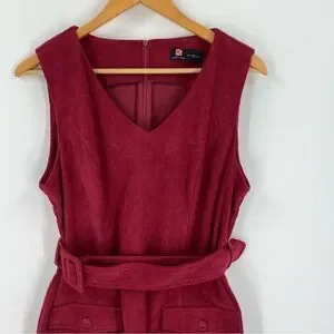 Kancy Kole Women’s V Neck Sleeveless Corduroy Burgundy Mini Dress size M