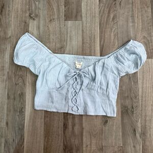 Aeropostale Textured lace front cropped coquette milkmaid puff sleeve top