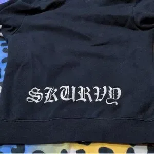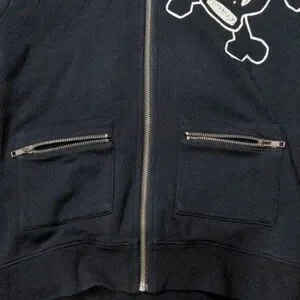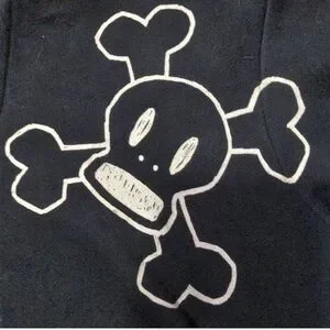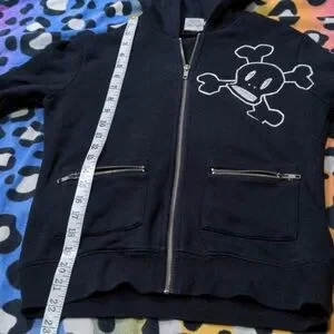 Trendy black hoodie with a playful skull graphic. Ideal for casual wear. Women’s small