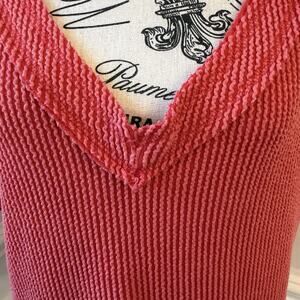 Alter’d State women’s short sleeve cropped t-shirt size Medium drop shoulder red with two toned ribbing. Raw seams around sleeves and V-Neck. Fabric is stretchy