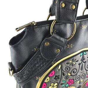 Excellent pre-owned condition, Loungefly Sugar Skull Day of the Dead large black faux leather bag.