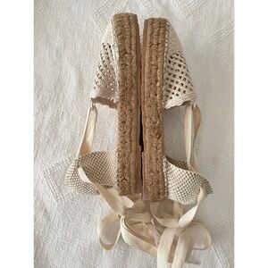 Step out in style with these elegant beige lace-up espadrilles. Perfect for adding a touch of sophistication to your casual ensemble.