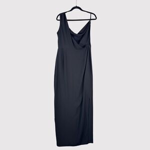 Amanda Uprichard Womens Dress Black Maxi One Shoulder A Line Party Evening Large