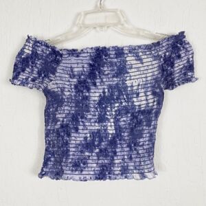 Kendall & Kylie Blue & White Tie Dye Smocked Top