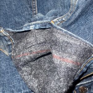 This authentic vintage Levi's denim jacket is a timeless classic, perfect for any retro enthusiast. Featuring a durable blue denim exterior and a soft, dark flannel lining, it offers both rugged style and warmth.