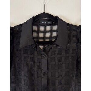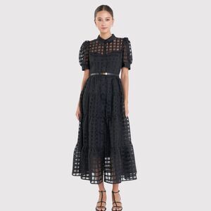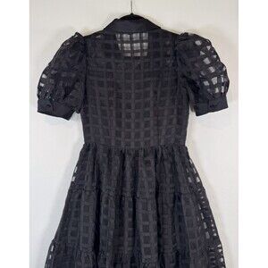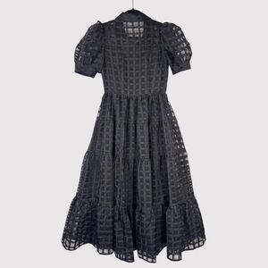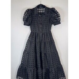 English Factory Dress Black Gridded Organza Tiered Maxi Puff Sleeve Fit Flare XS