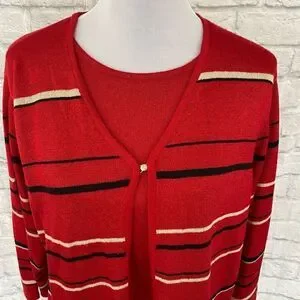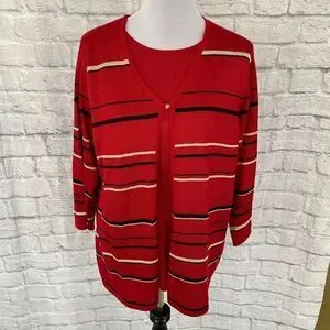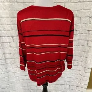 Sag Harbor women XL 3/4 sleeve layered stripe sweater w/clasp close red