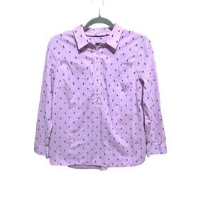 Talbots Petite Lavender Embroidered Button Front Popover Shirt Top LP