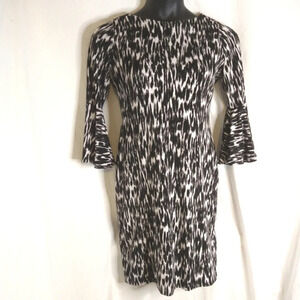 Fun fabulous Calvin Klein Animal Print Dress in excellent used condition. Size 6. Boat neckline, Bell sleeves, fitted design, stops at the knees or slightly above. Grey black and white. Made to accentuate your feminine silhouette. Order it today 😊❤️👍.