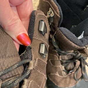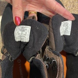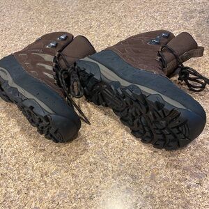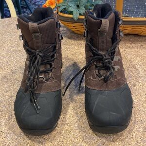Merrell Moab Polar Espresso Waterproof Hiking Boots J21147 Men’s 8.5 Winter Ice Grip. I consider these to be in good used condition but they have been worn and aren’t new so they show all over wear with minor imperfections/flaws from when they were made and from wear. Any measurements are very rough. Colors may be off because of lighting. These cannot be bundled with other items because of weight. I believe these are brown and black but I have a hard time with colors and could be wrong.