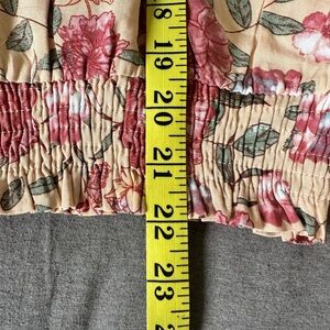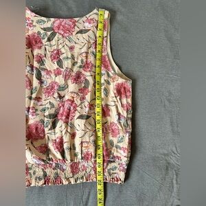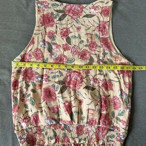 Brand new with tags Hayden sleeveless floral blouse featuring a soft neutral base with romantic red and pink rose print. Designed with a flattering gathered bodice and an elasticized hem for a comfortable, slightly blousy fit. Lightweight, breathable fabric that’s perfect for warmer days or easy layering. Perfect for spring & summer outfits.