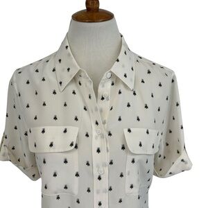 Equipment Silk Bee Print Short Sleeve Safari Shirt, Size M