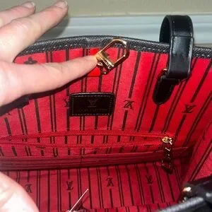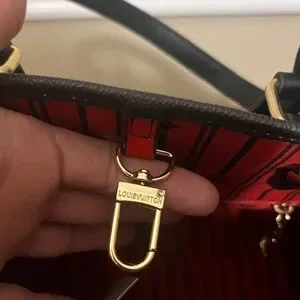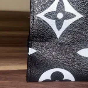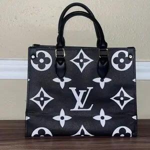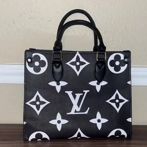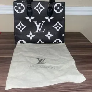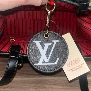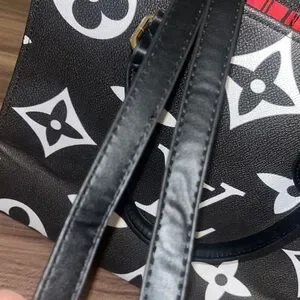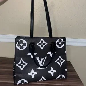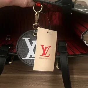 Chic tote with monogram. Black and white design. Perfect for elevating any outfit. Red interior lining. Has a small zipper pocket and smaller pockets. It has a removable bag charm on the inside or use as keychain accessory. It has two small handles and two longer shoulder straps. New with tag. Please see all pictures. Smoke free home. Offers welcome.