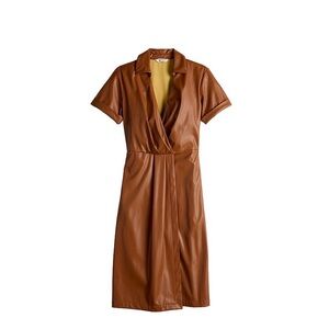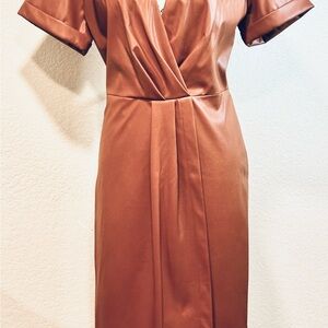 2/$40 🔥 Nine West: Pleated/ Wrap Look/ V Neck/Faux Leather Dress