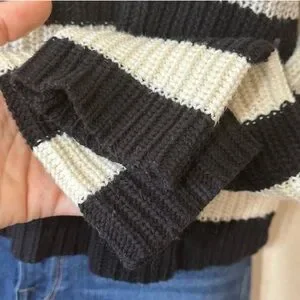 Classic Stripe Pattern: Featuring a timeless black and white stripe design, this sweater offers a sophisticated and versatile look that pairs effortlessly with any outfit.