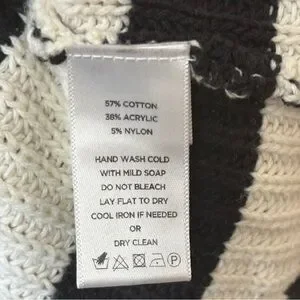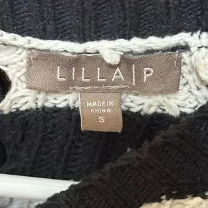 Lilla P Black White Stripe Chunky Knit Lace Up Back Sweater Small