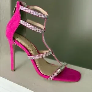 Jessica Simpson Women's Oliana Gem Bright Pink Embellished Stiletto Heel Sz 5M