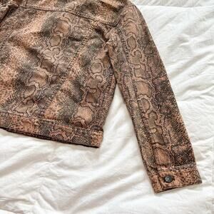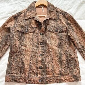 NWOT Free People Snake Trucker Jacket XS Brown Snakeskin Print Denim Cotton