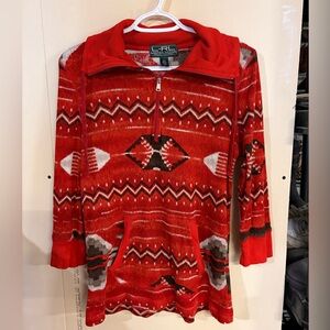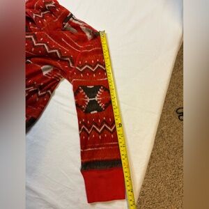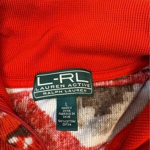 Vibrant red top with white accents. Comfortable and stylish for active wear.