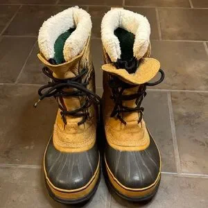 Sorel Men’s Caribou Winter Snow Boots Camel Waterproof Sherpa Cuff Size 8