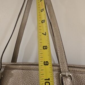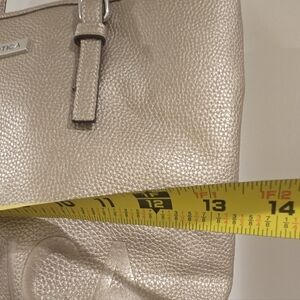 Stylish Nautica Zippered Handbag with Adjustable Shoulder Strap Large CapacityThe Nautica zippered handbag is a stylish tote designed for women with a large capacity. It features a metalic champagne exterior color and comes with an adjustable shoulder strap for added convenience. Made by the reputable brand Nautica, this handbag combines fashion and functionality for a chic and practical accessory for any woman's wardrobe. Pet friendly home. please review photos. Inquire with any questions. All as is condition.